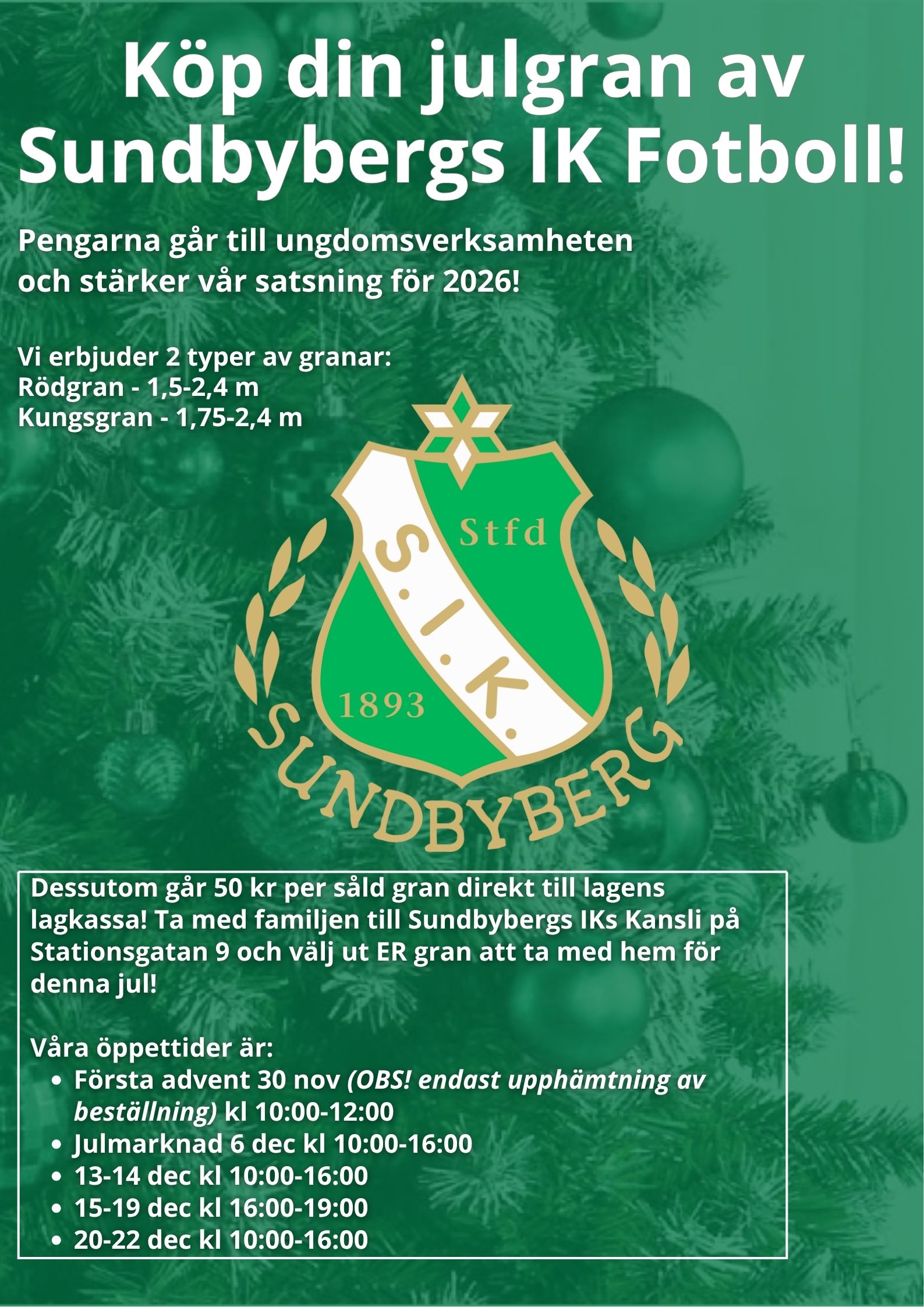 Köp din julgran av Sundbybergs IK Fotboll och var med och bidra till ungdomsverksamheten!
