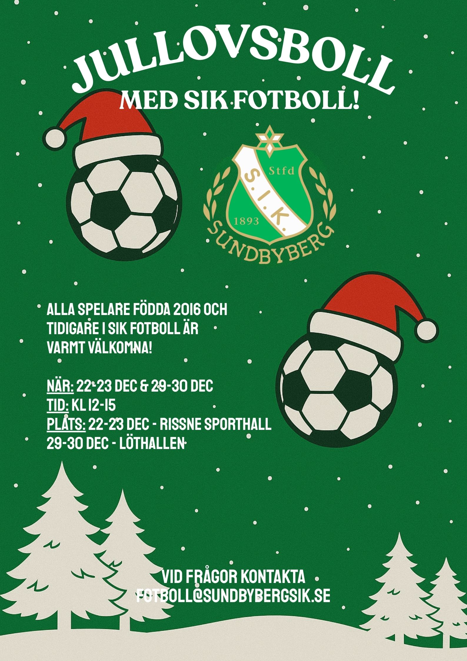 Vi välkomnar alla barn och ungdomar i SIK Fotboll födda 2016 och tidigare till vår JULLOVSBOLL 2025 🎅⚽